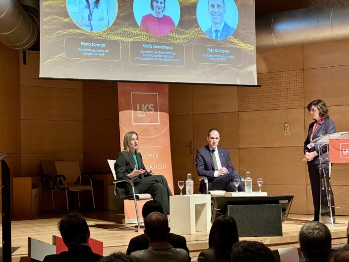 Maria Ubarretxena Gobernantza, Administrazio Digital eta Autogobernu sailburuak LKS NEXT TECH DAY jardunaldian parte hartu du Bilboko Itsas Museoan. Jardunaldian “pertsonak eraldaketa digitalaren erdigunean jartzearen garrantzia, bai eta adimen artifizialak administrazio publiko efizienteagoa, irisgarriagoa eta hurbilagoa bultzatzeko, modernizatzeko eta laguntzeko tresna gisa bete behar duen zeregin erabakigarria ere” azpimarratu nahi izan du Ubarretxenak.