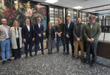 La diputada general de Gipuzkoa, Eider Mendoza, junto al diputado de Promoción Económica, Unai Andueza, y representantes de la Cámara de Gipuzkoa,...